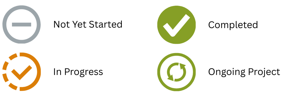 The dashboard below has been developed to track progress by the Coalition for Housing All Workers and Their Families in advancing action on these recommendations. It shows which initiatives have been completed, are currently in progress, are ongoing efforts, or have not yet been started. This dashboard reflects our collective commitment to creating safe, dignified, affordable housing for the workers and families who are essential to West Marin's vibrant communities.